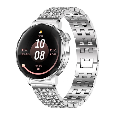 Đồng hồ thông minh i220 cho nữ, Độ phân giải 360x360, vỏ kim loại hợp kim, dây đeo bằng thép kim cương, cảnh báo tin nhắn/cuộc gọi, hơn 100 chế độ thể thao